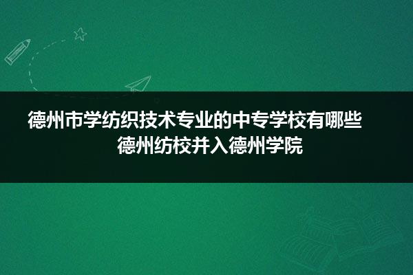 山东职校招生网为同学们提供了全面了解各类职业学校的招生信息途径,小编为大家整理了关于《 德州市学纺织技术专业的中专学校有哪些》的详细内容,德州市学纺织技术专业的中专学校有哪些 德州纺校并入德州学院信息仅供参考,如有变动,请以相关学校官方最新消息为准。